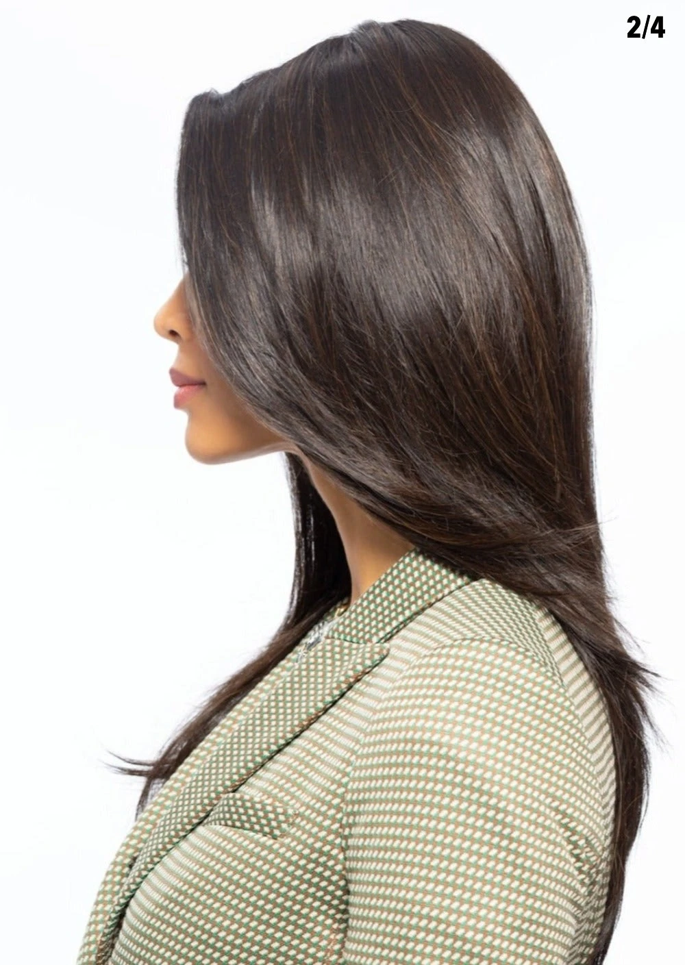 - Bangs: layered 8 to 11”